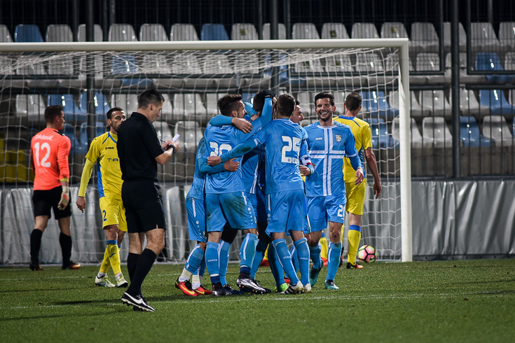 0:1 Majer; 11. minuta: Igralci Rijeke so na svoji polovici naredili napako. Do žoge je prišel Majer, ki je bil sam pred vratarjem Prskalom. Z rutiniranim strelom po tleh je popeljal rumene v vodstvo.
