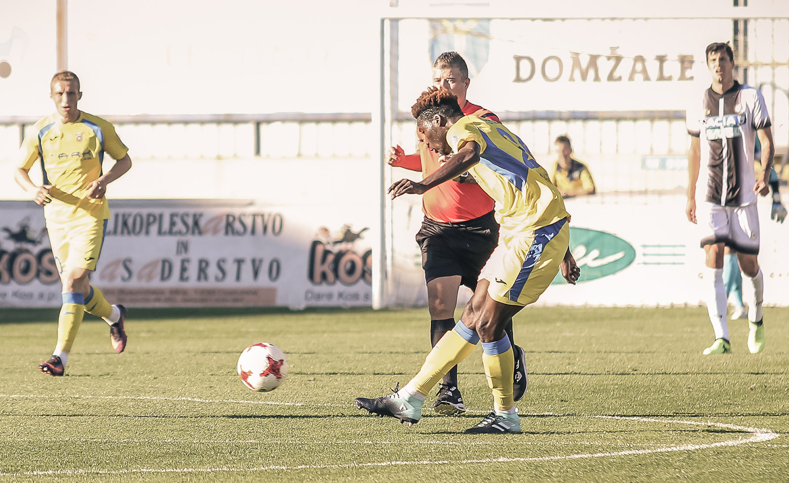 14. minuta: Matos Ryder se je izkazal s prodorom na polovici Domžal. Dobrih 20 metrov od vrat je streljal mimo desne vratnice.