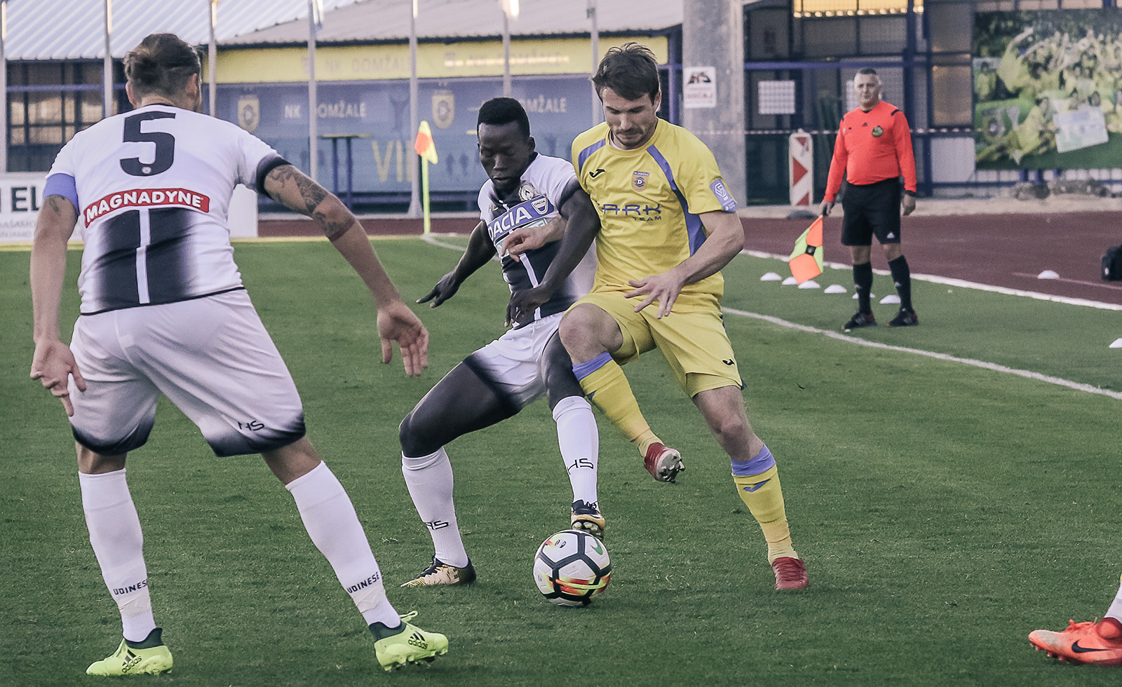 1:0 Klemenčič; 3. minuta: Domžalčani so prišli do prostega strela globoko na desni strani polovice Udineseja. Ibraimi je poslal predložek na drugo vratnico, kjer je iz neposredne bližine Klemenčič z glavo žogo poslal v mrežo.