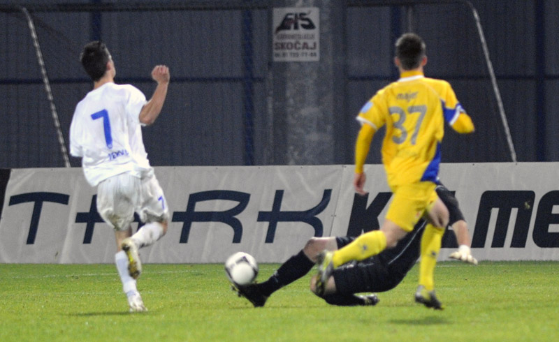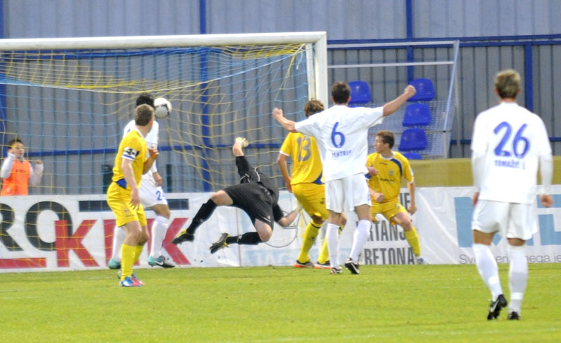 4. minuta: Kovjenić je z leve strani odlično obrnil stran in na desnem robu kazenskega prostora našel Husmanija. Ta je prodrl do končne linije igrišča in močno podal v sredino. Na prvi vratnici je nespretno žogi smer spremenil Krajcer in zadel vratnico, od koder se je žoga odbila do Geriča. Ta je z osmih metrov sprožil v desni kot, a se je z odlično obrambo izkazal Kotnik.