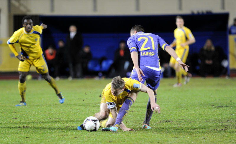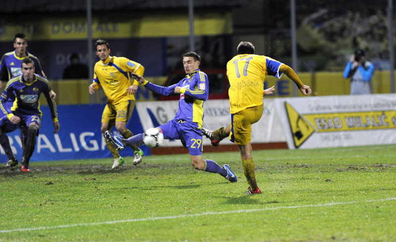 28. minuta: Kovjenić je dobil skok na polovici Maribora. Žoga je prišla do Slobodana Vuka, ki je s 25 metrov močno streljal, a je meril previsoko.