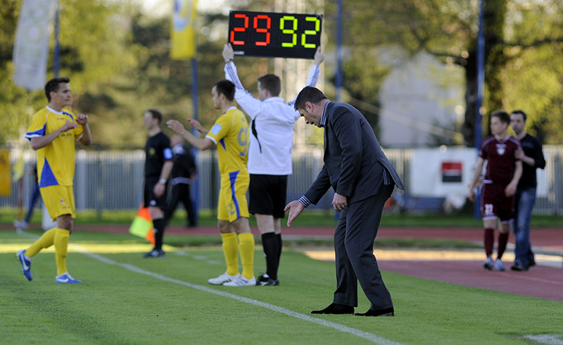 45. minuta: Četrti sodnik Borut Janžekovič je označil minuto sodnikovega dodatka prvega polčasa.