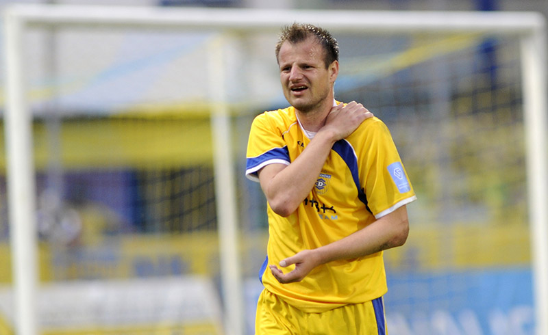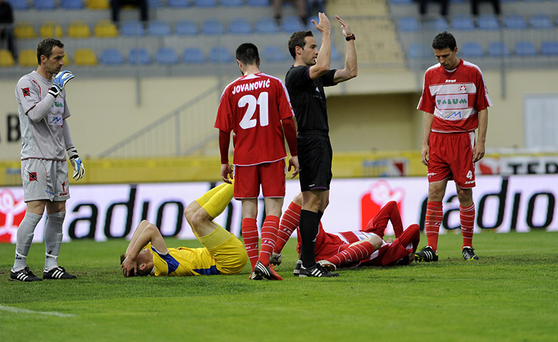 34. minuta: Zaradi prekrška nad Jovanovićem je rumeni karton prejel Mato Šimunović.