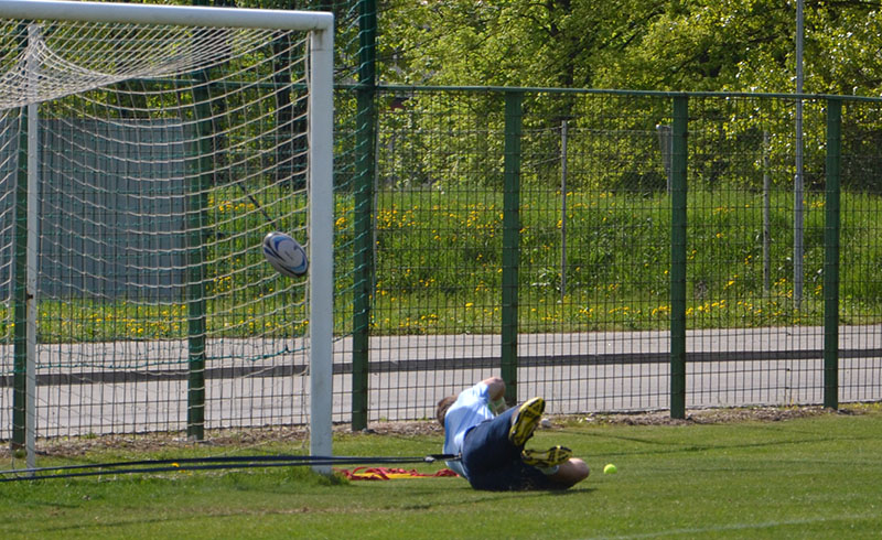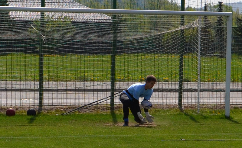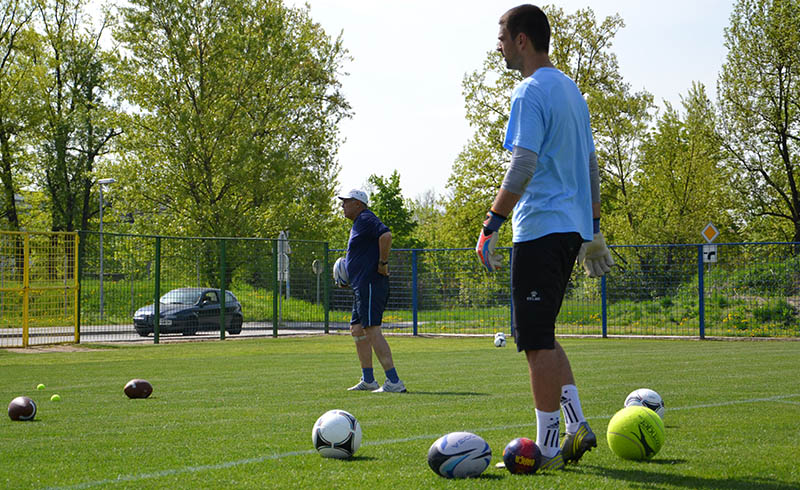 Mini pripravam na zaključni del sezone se niso izognili niti vratarji, ki jih trener vratarjev Filip Filipovski na treningih velikokrat preseneti z izjemno zanimivimi vajami. Tako je bilo tudi v torek, ko so se morali spopasti z različnimi žogami, od nogometne, teniške, do žoge za ameriški nogomet.