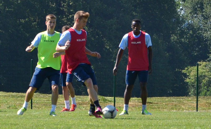 Na četrtkovem dopoldanskem treningu je vadilo štirinajst nogometašev in štirje vratarji. Manjkali so mladi reprezentanti Gaber Dobrovoljc, Erik Janža, Žan Majer in Žiga Kous, ki se bodo po dopustu ekipi znova pridružili v nedeljo. Poškodovani so Darko Zec (stopalo), Marko Kovjenić (stegenska mišica), Anže Jelar, ki je na enem od treningov v dvoboju z vratarjem Gregorjem Zabretom prejel močan udarec v koleno in Slobodan Vuk, ki je zaradi ureznine na nogi dobil nekaj šivov. Trening sta izpustila še Jure Balkovec, ki opravlja maturo in Jon Gorenc Stanković, ki ga v soboto čaka tekma za naslov kadetskega prvaka Slovenije. Domžalčani se bodo ob 16:00 v Športnem parku Domžale pomerili s Koprom, ki pred zadnjim kolom na lestvici Prve kadetske lige za moštvom Darka Birjukova zaostaja dve točki.