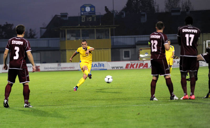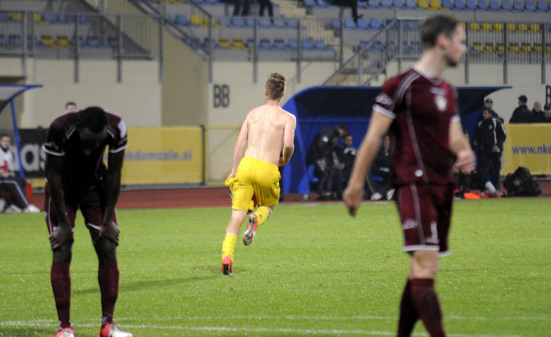 75. minuta: Živec je izgubil žogo na polovici Triglava. Pokorn je z odlično podajo za hrbtom domačih branilcev našel Đurkovića, ki je sam krenil proti vratom. Poizkušal je s preigravanjem v levo, a se je z imenitnim posredovanjem izkazal vratar Zabret.