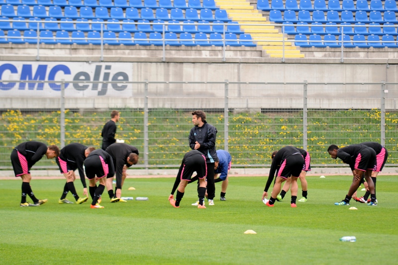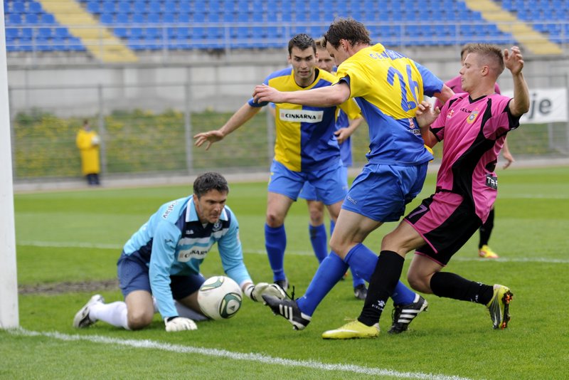 21. minuta: Kot z leve strani je izvajal Hanžič. Podal je daleč na drugo vratnico, kjer je Pekič z glavo streljal visoko čez vrata.