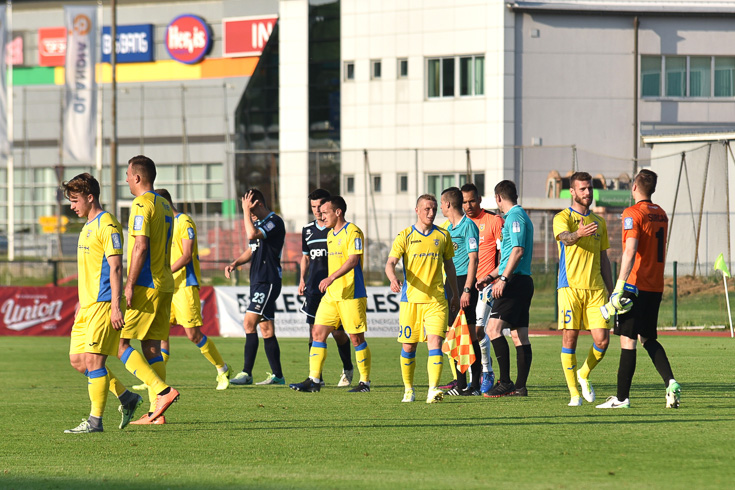 38. minuta: Zaradi prekrška nad Janom Repasom je rumeni karton prejel Celcer. Prosti strel z 20 metrov je izvajal Franjić, ki je znova stresel prečko.