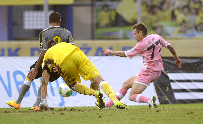 66. minuta: Goran Vuk je bil pri žogi na levem robu kazenskega prostora Udineseja. Poslal je nizko žogo na drugo vratnico, kjer je šel vratar Scuffet v prazno. Gabrić je uspel streljati, a je na golovi črti izbil Santos.