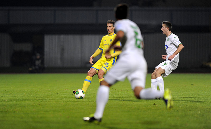 28. minuta: Šporar je krenil v hiter protinapad po levi strani. Na vrhu kazenskega prostora je žogo nastavil Omladiču, ki je s prve streljal za las mimo leve vratnice