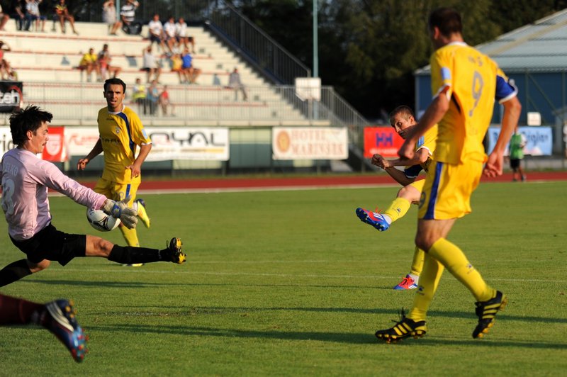 0:1 Požeg Vancaš; 42. minuta: Požeg Vancaš je začel akcijo na desni strani. Podal je v kazenski prostor do Gorana Vuka, ki je poizkušal s preigravanjem. Žoga se je odbila do Požega Vancaša, ki je odlično preigral domače branilce in potem z 11 metrov žogo poslal mimo vratarja Pelka v spodnji desni kot domačih vrat.