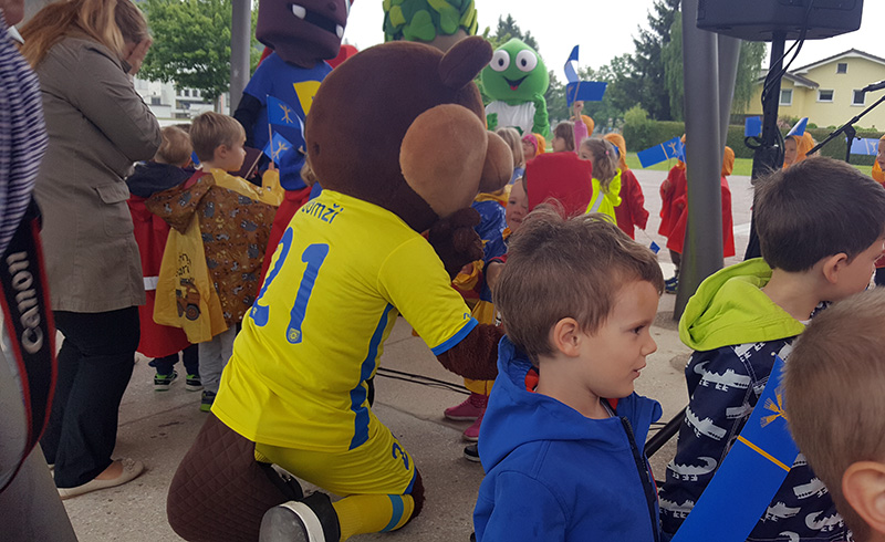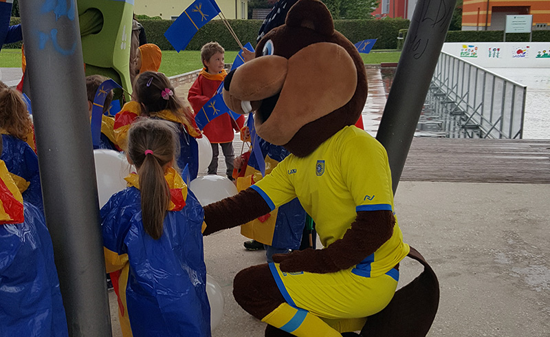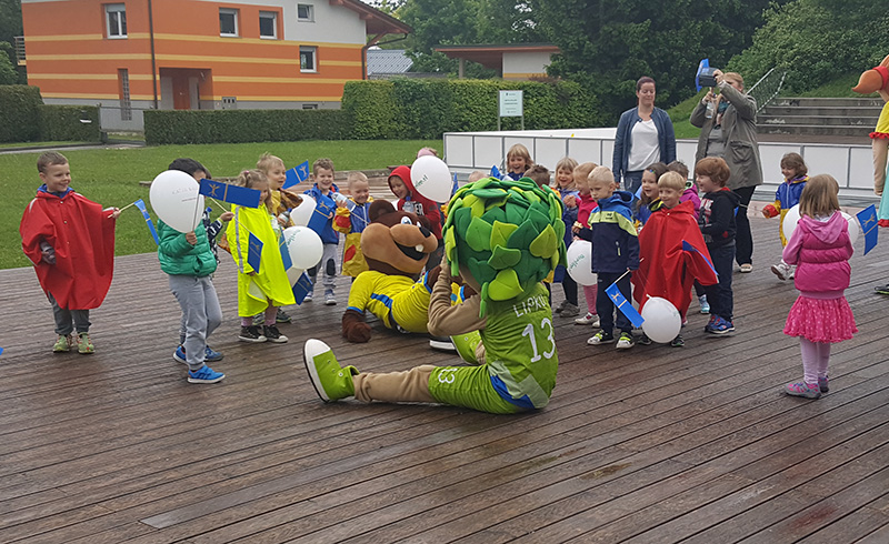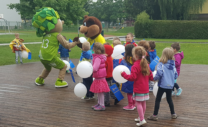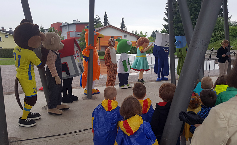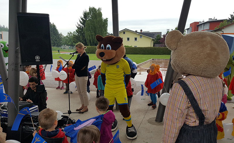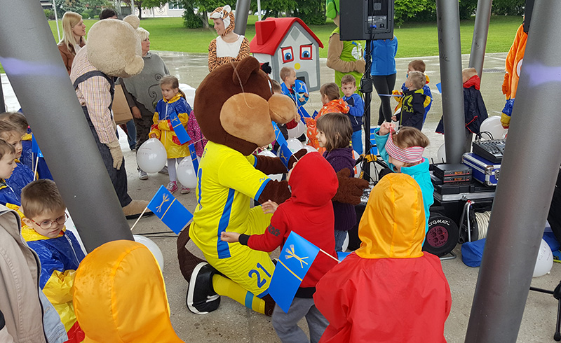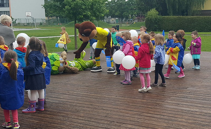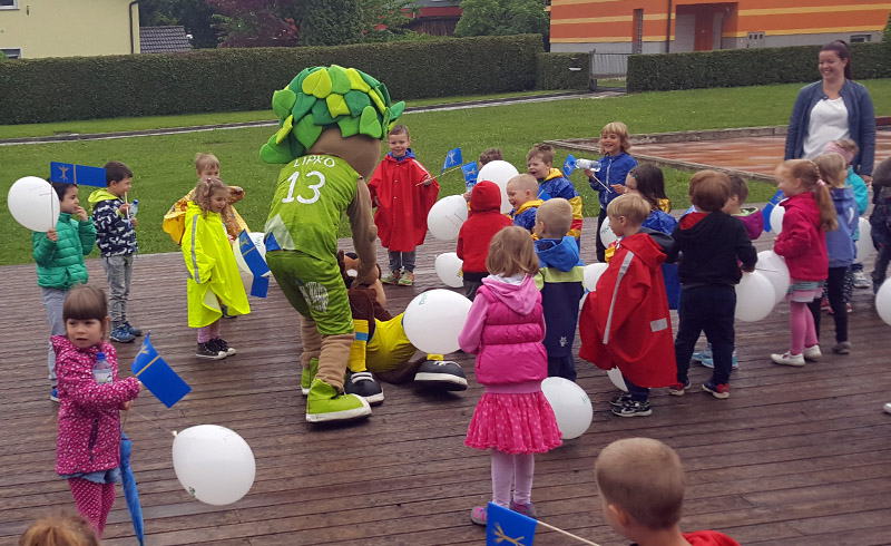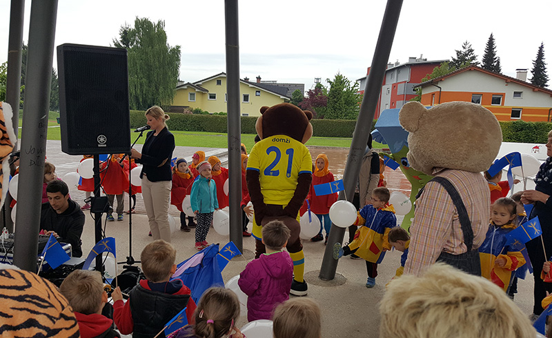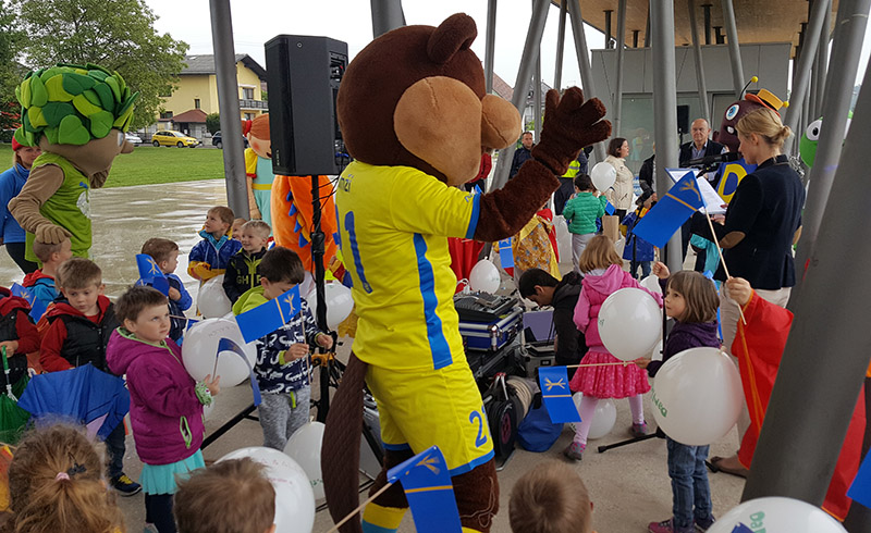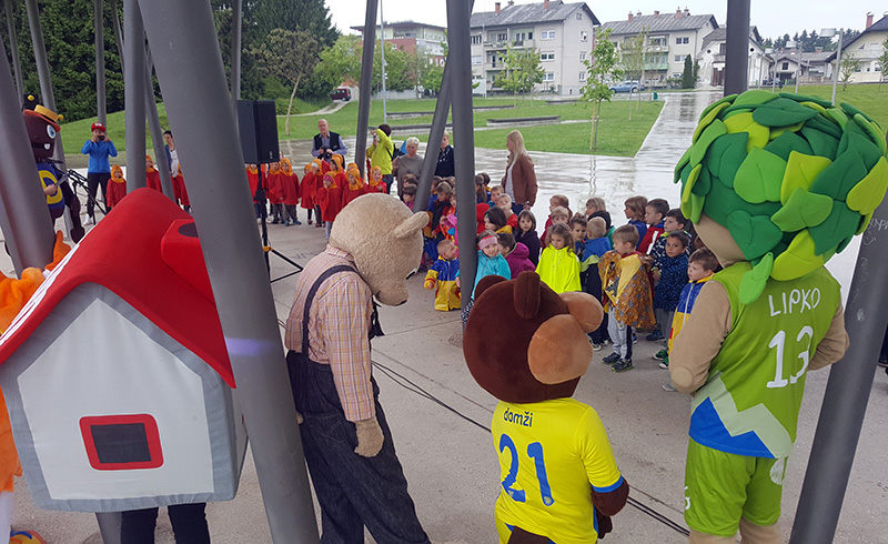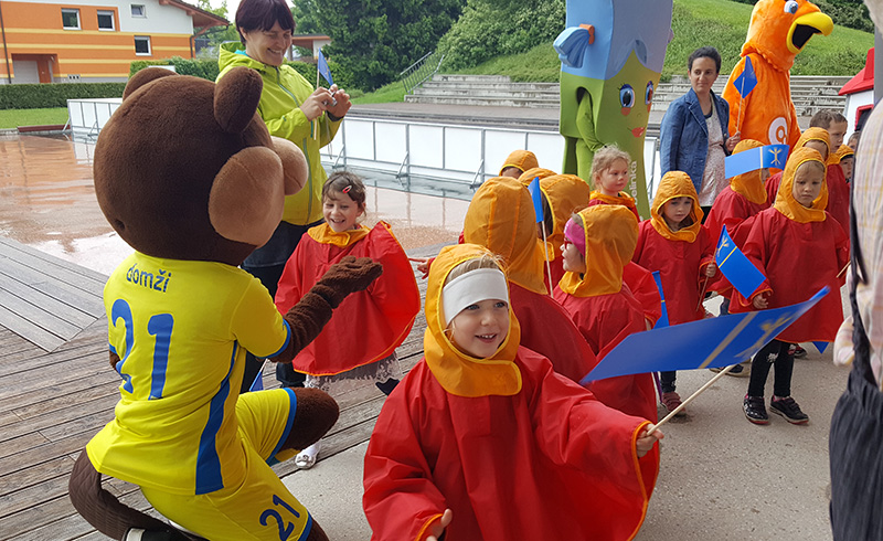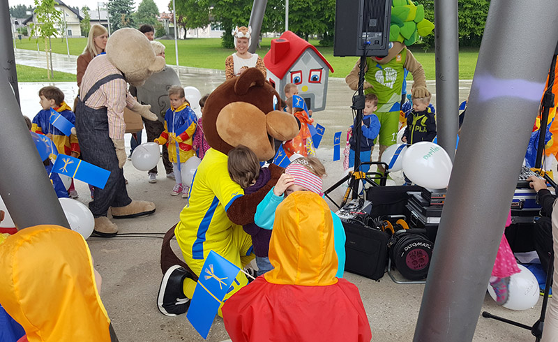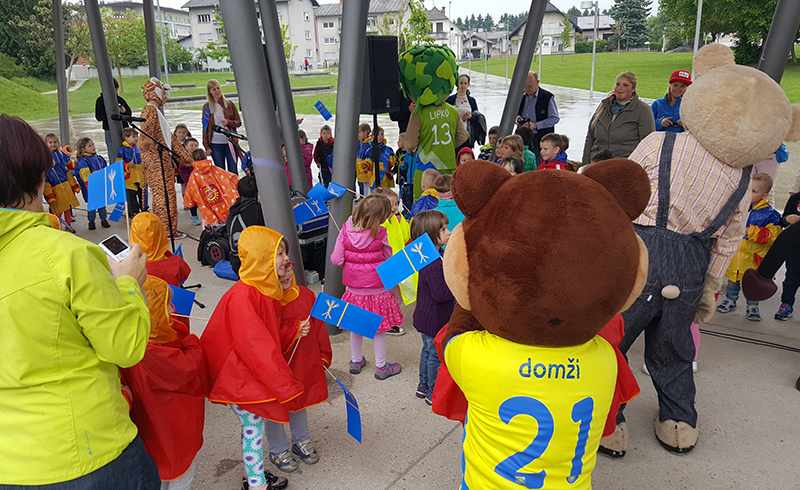 Čeprav so bili povabljeni otroci iz vseh domžalskih vrtcev, so se zaradi slabega vremena dogodka na žalost udeležili le člani vrtcev Urša in Dominik Savio. Vse zbrane je pozdravila podžupanja, mag. Renata Kosec, ki je tudi predstavila vsako od maskot.