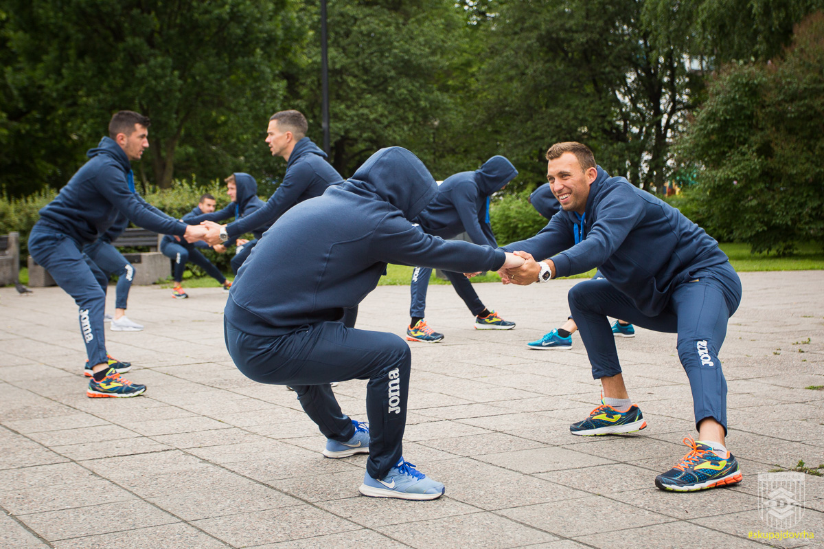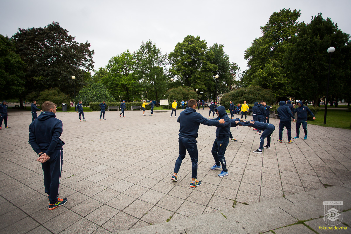 Nogometaši Domžal so se zbudili v mrzlo in oblačno vreme. Takoj po zajtrku so se odpravili na krajši sprehod v park, kjer so se razgibali in se zabavali ob družabnih igrah. Domžalčane ob 19:30 čaka uradni trening na Le Coq Areni.