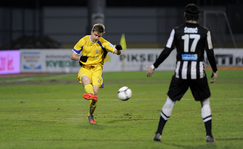 14. minuta: Kous je slabo oddal žogo na svoji polovici. Do nje je prišel Majer, ki je nekoliko z leve močno streljal proti vratom. Vratar Vidmar je strel s 25 metrov brez težav ujel.