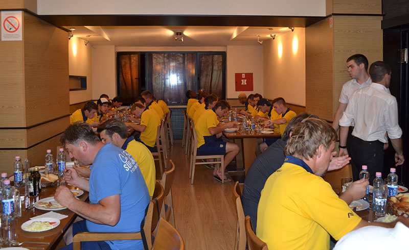 Po dobro uro dolgem treningu so se nogometaši vrnili v hotel, kjer jih je že čakala večerja. Za zaključek dneva so se nekateri igralci odločili obiskati središče mesta, drugi pa so se nemudoma odpravili k počitku. V sredo so dvakratni državni prvaki opravili lahek jutranji trening, pojedli zajtrk in se ob 10:00 odpravili proti končnemu cilju, Bukarešti.