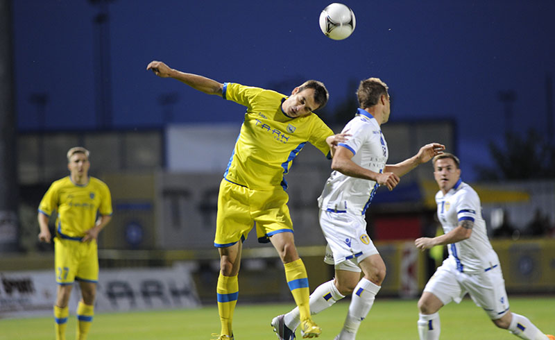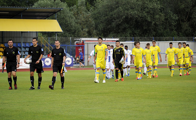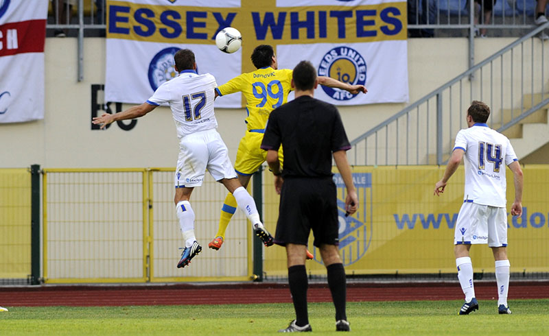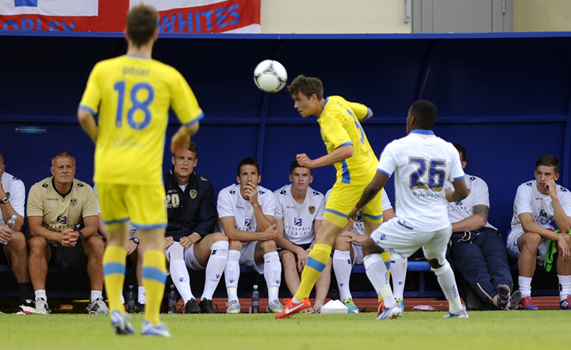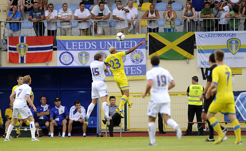 2. minuta: Igralci Leedsa so poslali dolgo podajo na polovico Domžal. Kovjenić je z glavo žogo slabo vrnil proti vratarju Mulaliću. Vmešal se je Poleon, ki je zadel desno vratnico.